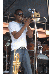 Rok: 1986- Troy Andrews (born January 2, 1986), also known by the stage name Trombone Shorty, is a trombone and trumpet player from New Orleans, Louisiana, United States. He has worked in jazz, funk and rap music. Andrews is the younger brother of trumpeter and bandleader James Andrews as well as the grandson of singer and songwriter Jessie Hill. Andrews began playing trombone at age four, and since 2009 has toured with his own band, Trombone Shorty & Orleans Avenue. |