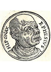 Rok: činný 540-537 př. Kr. Hipponax (Ancient Greek: Ἱππῶναξ; gen.: Ἱππώνακτος), of Ephesus and later Clazomenae, was an Ancient Greek iambic poet who composed verses depicting the vulgar side of life in Ionian society in the sixth century BC. He was celebrated by ancient authors for his malicious wit (especially for his attacks on some contemporary sculptors, Bupalus and Athenis), and he was reputed to be physically deformed (a reputation that might have been inspired by the nature of his poetry). Little of his work survives despite its interest to Alexandrian scholars, who collected it in two or three books. He influenced Alexandrian poets searching for alternative styles and uses of language, such as Callimachus and Herodas, and his colourful reputation as an acerbic, social critic also made him a popular subject for verse, as in this epigram by Theocritus:Here lies the poet Hipponax. If you are a scoundrel, do not approach the tomb; but if you are honest and from worthy stock, sit down in confidence and, if you like, fall asleep.Ancient literary critics credited him with inventing literary parody and "lame" poetic meters suitable for vigorous abuse, as well as with influencing comic dramatists such as Aristophanes. His witty, abusive style appears for example in this quote by Herodian, who however was mainly interested in its linguistic aspects (many of the extant verses were preserved for us by lexicographers and grammarians interested in rare words):τίς ὸμφαλητόμος σε τὸν διοπλῆγαἔψησε κἀπέλουσεν ἀσκαρίζοντα;What navel-snipper wiped and washed you as you squirmed about, you crack-brained creature?where 'navel-snipper' signifies a midwife. |