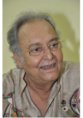 Rok: 1935- Soumitra Chatterjee or Soumitra Chattopadhyay (Shoumitro Chôṭṭopaddhae; born 19 January 1935) is an Indian film and stage actor and poet. He is best known for his collaborations with film director Satyajit Ray, with whom he worked in fourteen films, and his constant comparison with the Bengali cinema screen idol Uttam Kumar, his contemporary leading man of the 1960s and 1970s.Starting with his debut film, Apur Sansar (The World of Apu, 1959), the third part of Apu Trilogy, he went on to work in several notable films with Ray, including Abhijan (The Expedition, 1962), Charulata (The Lonely Wife, 1964), Aranyer Din Ratri (Days and Nights in the Forest, 1969); Ashani Sanket (Distant Thunder, 1973); Sonar Kella (The Fortress, 1974), Joi Baba Felunath (The Elephant God, 1978), Ghare-Baire (The Home and The World, 1984) and Ganashatru (Enemy of the People, 1989). Meanwhile, he also worked with other noted directors of Bengali cinema, with Mrinal Sen in Akash Kusum (Up in the Clouds, 1965), Tapan Sinha in Kshudista Pashan (Hungry Stones, 1960), Jhinder Bandi (1961), Asit Sen in Swaralipi (1961), Ajoy Kar in Saat Pake Bandha (1963), Parineeta (1969), and Tarun Mazumdar in Sansar Simante (1975) and Ganadevata (1978).He was awarded the Padma Bhushan by the Government of India in 2004. In 2012, he received the Dadasaheb Phalke Award, India's highest award in cinema given by the government of India for lifetime achievement. He has won two National Film Awards as an actor, and as an actor in Bengali theatre, he received the Sangeet Natak Akademi Award in 1998, given by the Sangeet Natak Akademi, India's National Academy of Music, Dance and Drama. In 2014, he received the introductory Filmfare Awards East for Best Male Actor (Critics) for his role in Rupkatha Noy. |